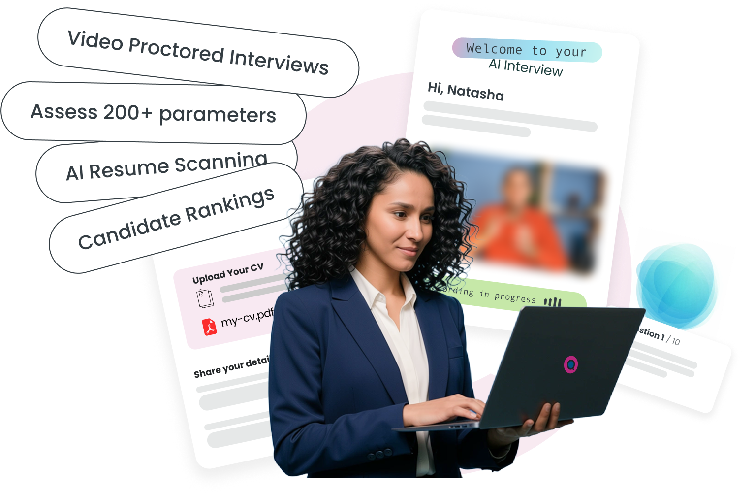 Our AI Avatars let you choose how candidates experience your interviews - from a friendly human-like presence to a sleek, modern orb interface. Whether you’re aiming for warmth or efficiency, the choice is yours.